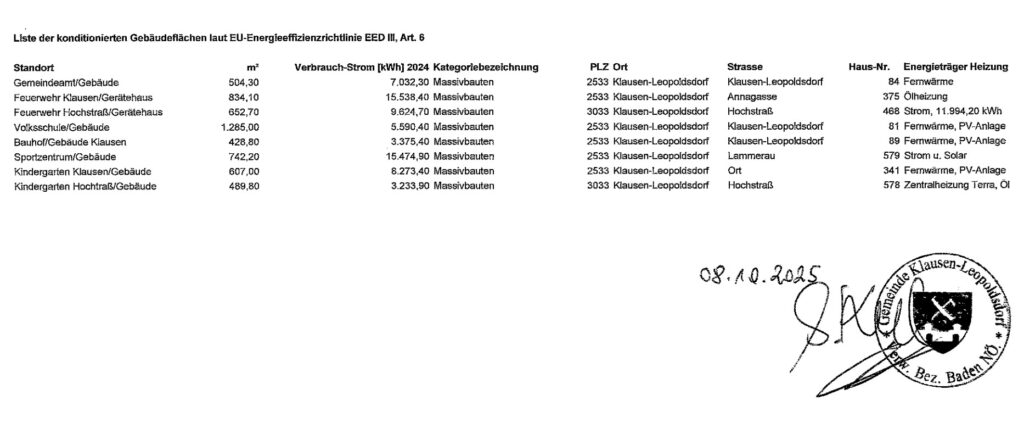 Liste der konditionierten Gebäudeflächen der Gemeinde Klausen-Leopoldsdorf