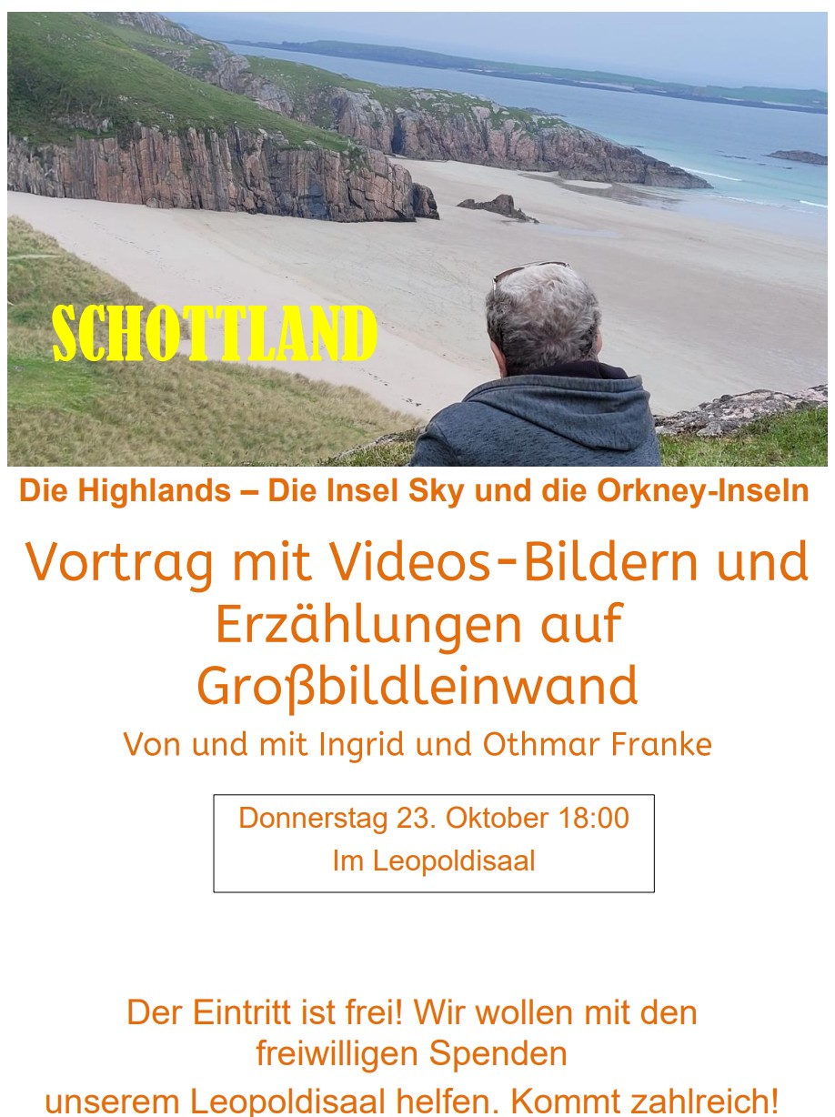 Die Highlands – Die Insel Sky und die Orkney-Inseln + Zu Google Kalender hinzufügen + iCal / Outlook exportieren 00 Tage 00 Stunden 00 Minuten 00 Sekunden Datum Okt. 23 2025 Uhrzeit 18:00 Standort Leopoldisaal Klausen-Leopoldsdorf Kategorie Information Unterhaltung Veranstalter Gemeinde Teile diese Veranstaltung