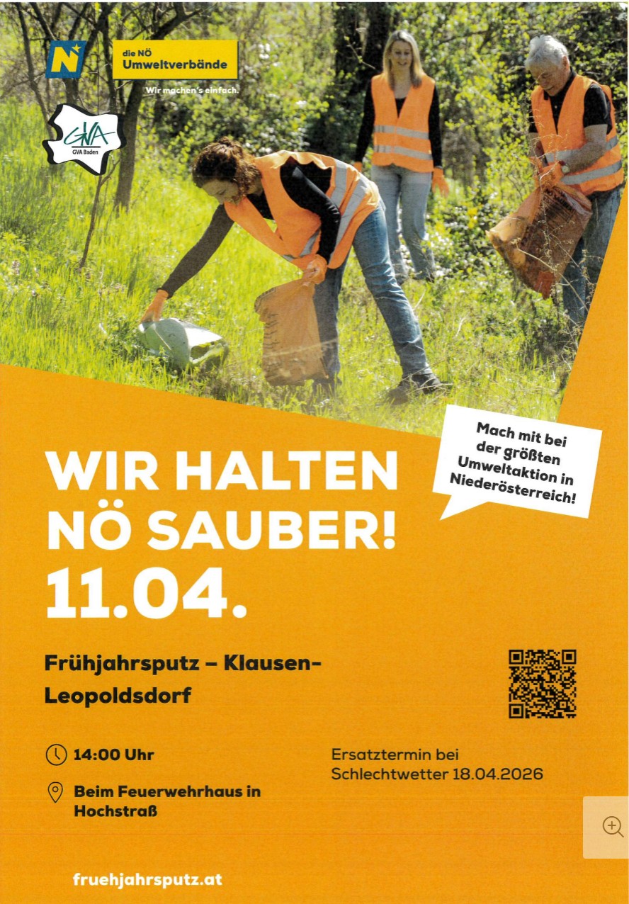 Wie halten NÖ sauber 11.04.26 + Zu Google Kalender hinzufügen + iCal / Outlook exportieren Datum Apr. 11 2026 Abgelaufen! Uhrzeit 14:00 Standort Klausen-Leopoldsdorf Andere Orte Hochstrass Kategorie Information Soziales Veranstalter FF Klausen-Leopoldsdorf Weitere Veranstalter FF Hochstrass Teile diese Veranstaltung